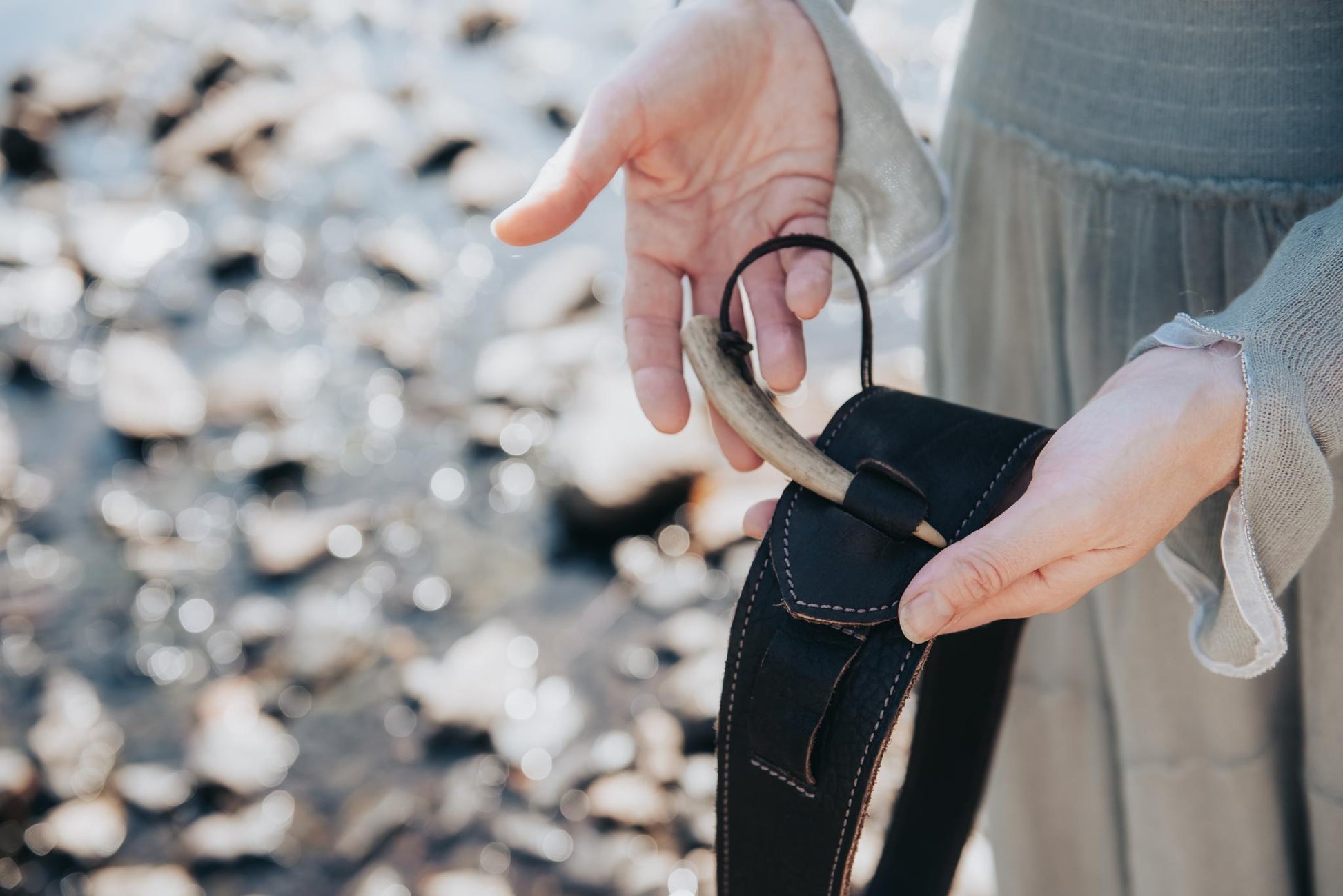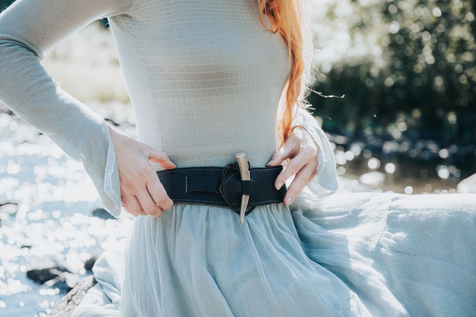 This design evolved after looking for the perfect western hug-your-hips belt, and not being able to find it. Created from bison leather, this slinky belt will accent dresses, sweaters, and jeans. The exclusive deer tine pops into either one or the other cinch to adjust for size and style. We think this is a must have for any wardrobe. Sm/Med ( Fits 30"/33") Med/Large (Fits 34"/37") Large/X-Large (Fits 40"/43") Handling fee applied at checkout.