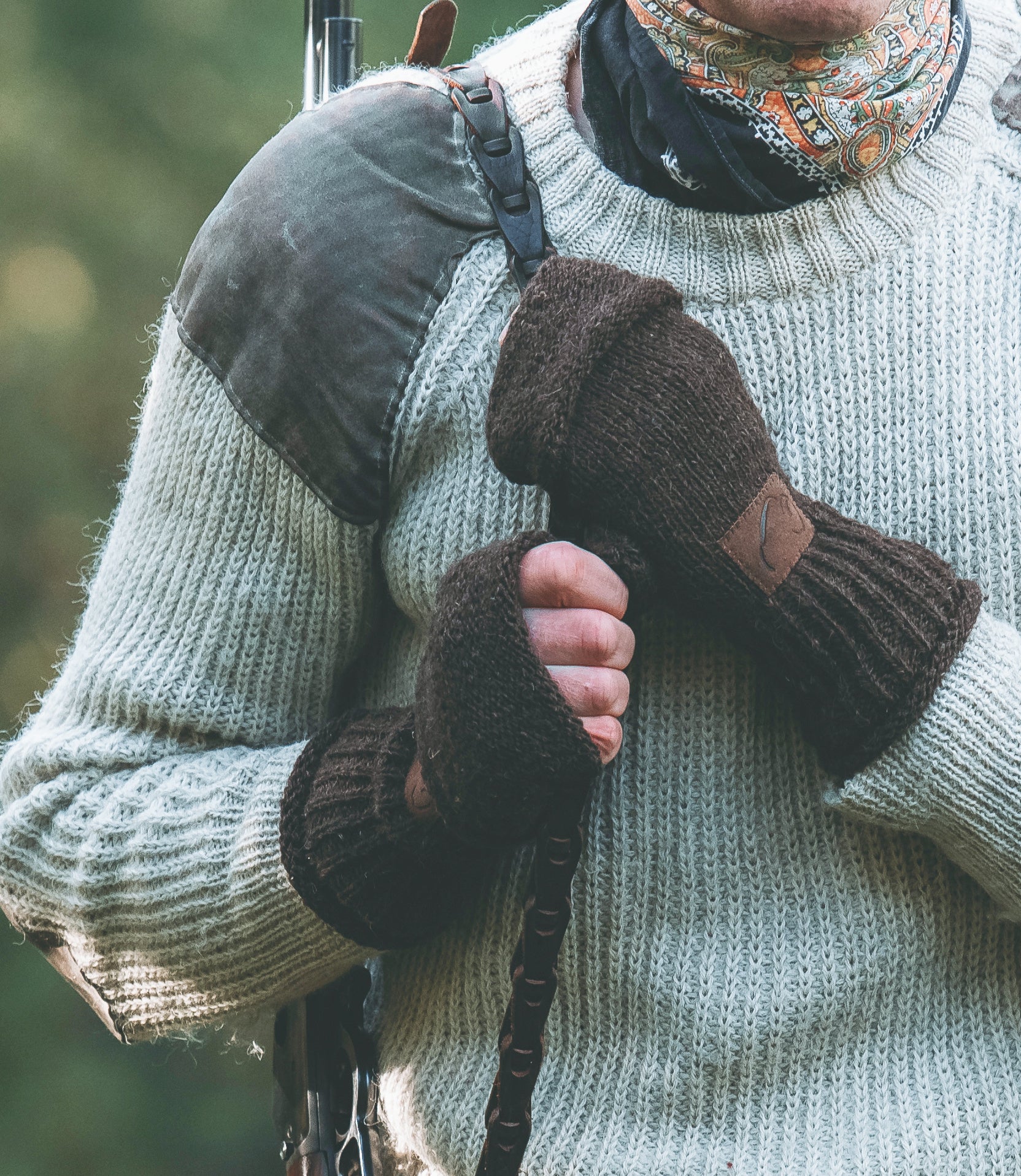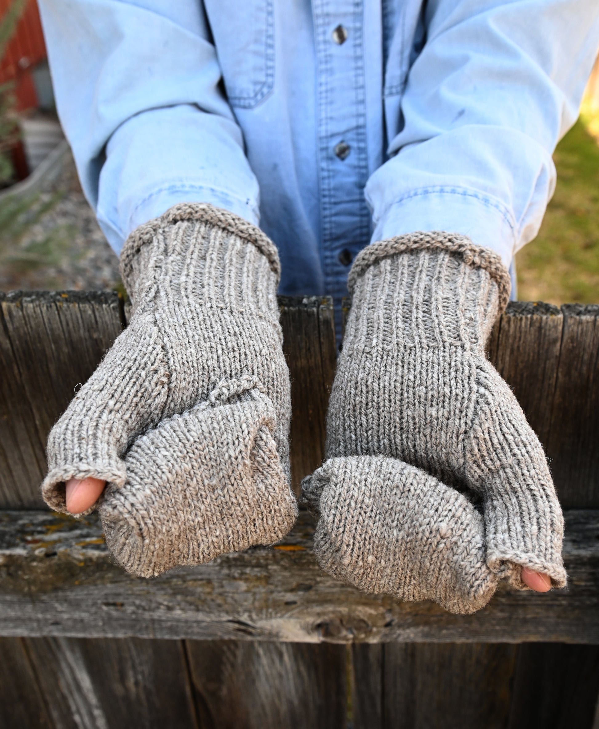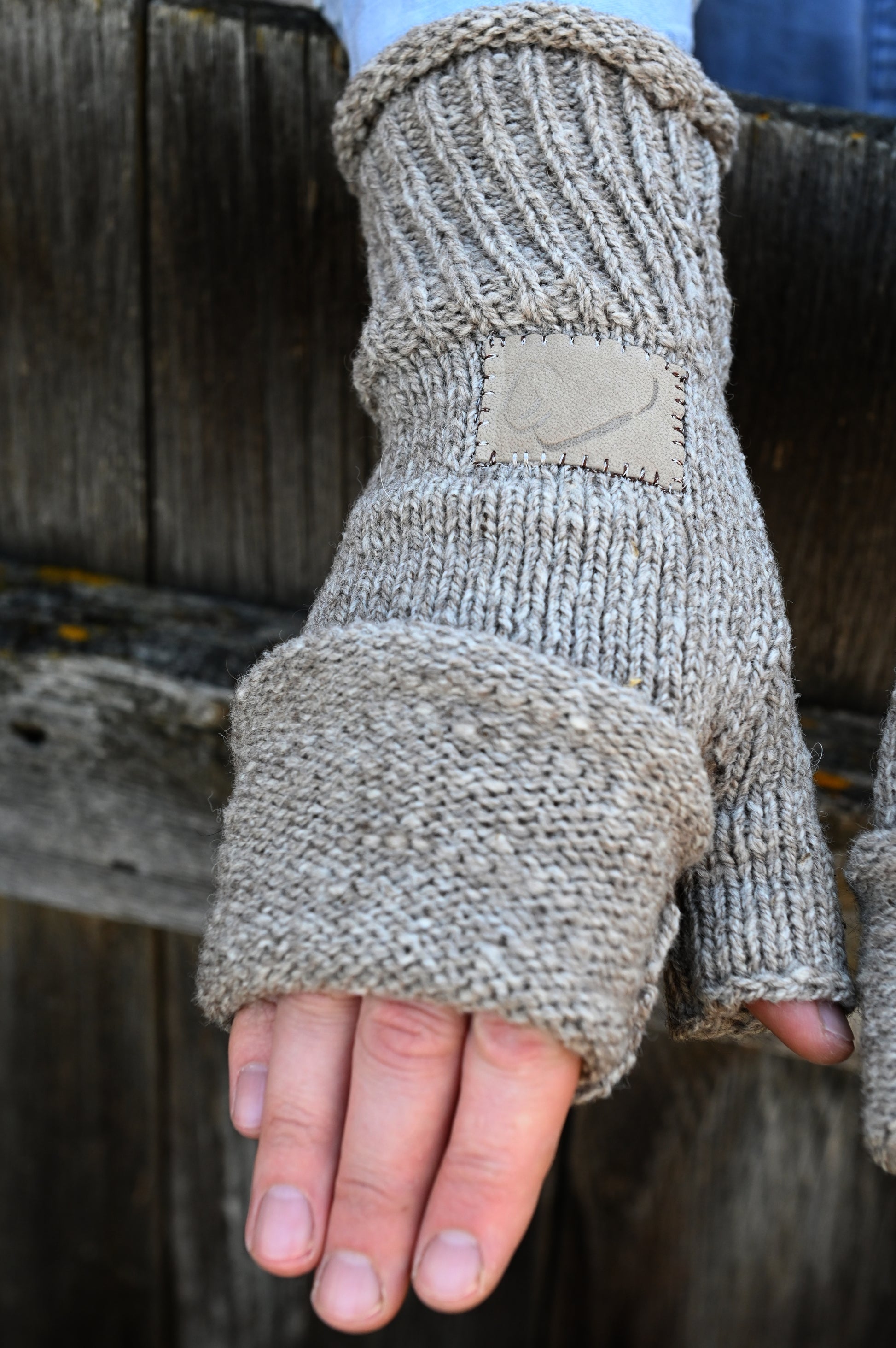 Warm Montana ranched and milled bison, alpaca, and wool are blended to make this great mitt. 1) Mitts can be worn cuffed, to allow fingers to work while keeping the hand warm. 2) When the wind blows, or the steering wheel is still frozen, unroll the cuff to cover the fingers and quickly warm them. 3) Warm enough? Pull mitts down to wrists to keep from misplacing and to have ready for use. Knitted with our all natural Montana bison, alpaca, & wool yarn. Field tested by fly fishers, construction workers, and outdoor enthusiasts, who give it a thumbs (free) up.